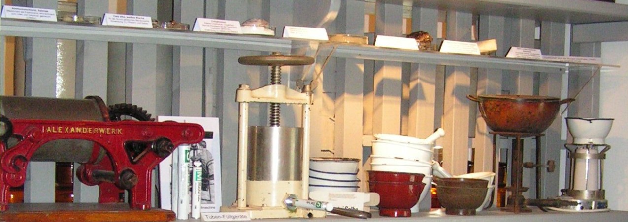 meistens mit größeren Geräten und Gefäßen im Galenischen Labor. Die